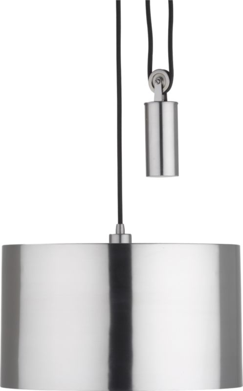 I love the pulley function and the shiny metal drum shade. They have a floor lamp with the same shade. And check out the price. CB2.com a favorite source when you can't afford designer.